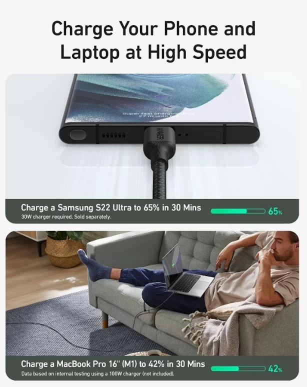 Anker 544 USB-C to USB-C Cable 240W (Bio-Braided) (1.8m/6ft) -Black A80F6H11